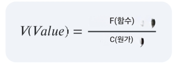 가치공학에서 가치는 다음과 같은 수식으로 정의됩니다.